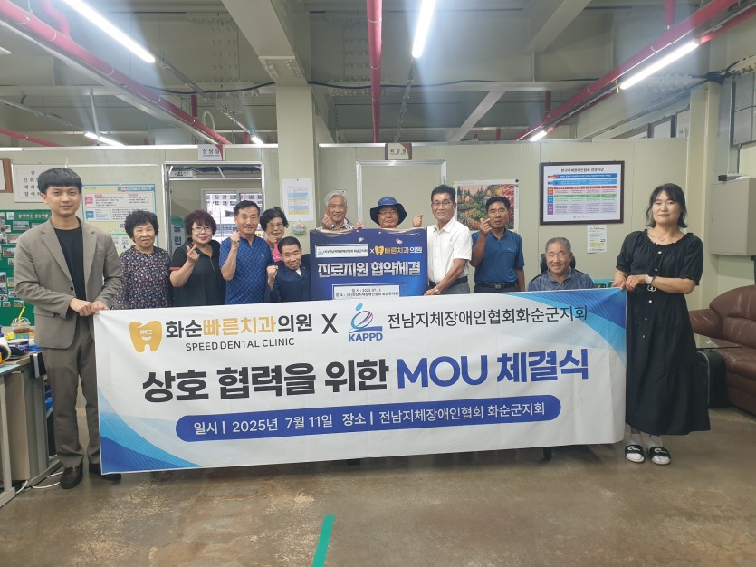 저희 화순빠른치과와 (사)전남지체장애인협회 화순군지회가 뜻깊은 MOU 협약을 체결했습니다.